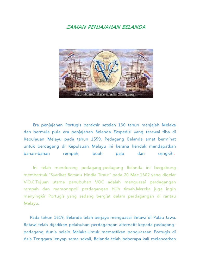 Zaman Penjajahan Belanda Di Tanah Melayu Pdf